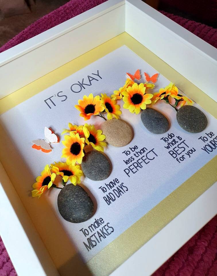 This unique pebble art makes a wonderful gift for any occasion. You can customise quotes and colours to create a piece that’s meaningful and personal.