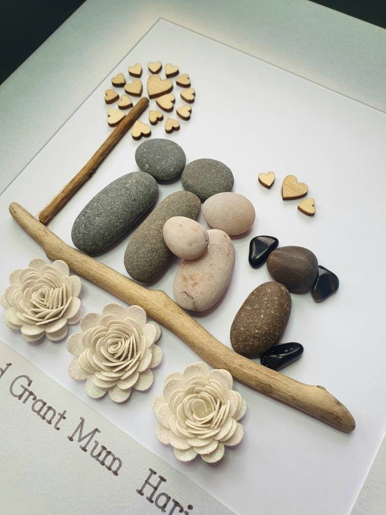 All my pebble art pictures are made to order using handpicked natural pebbles from the Highlands of Scotland, alongside quartz crystal gemstones, sea glass, twigs, and driftwood. Each natural piece varies in colour, shape, size, and texture, ensuring every artwork is truly unique.