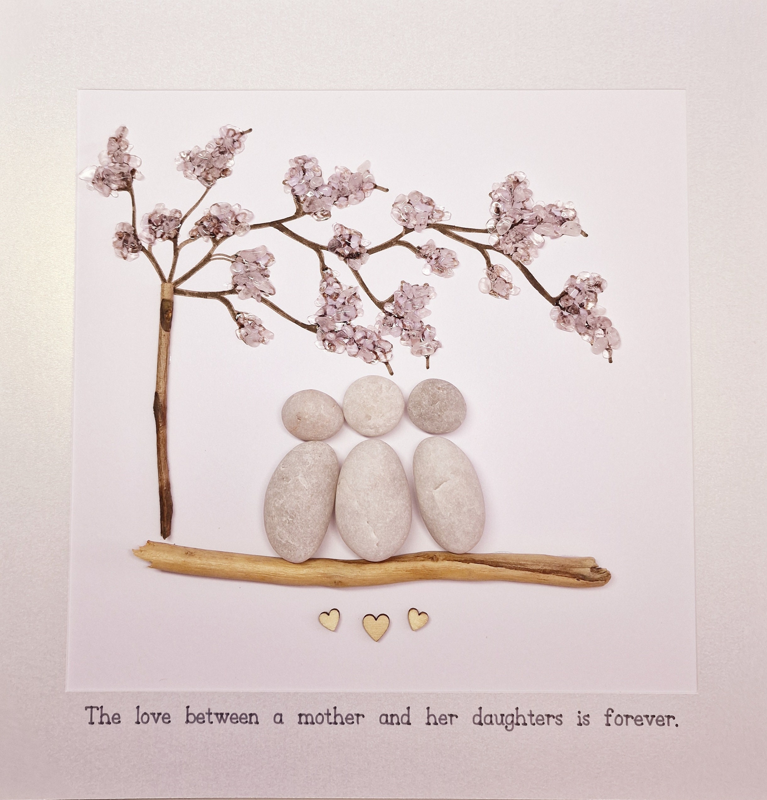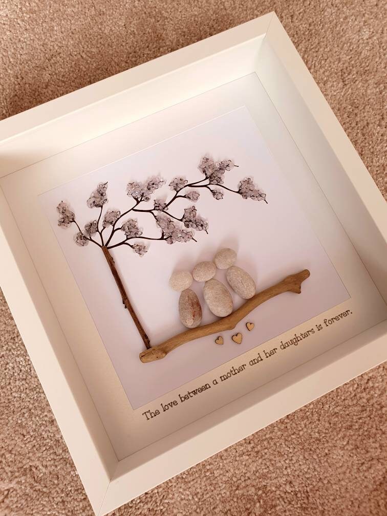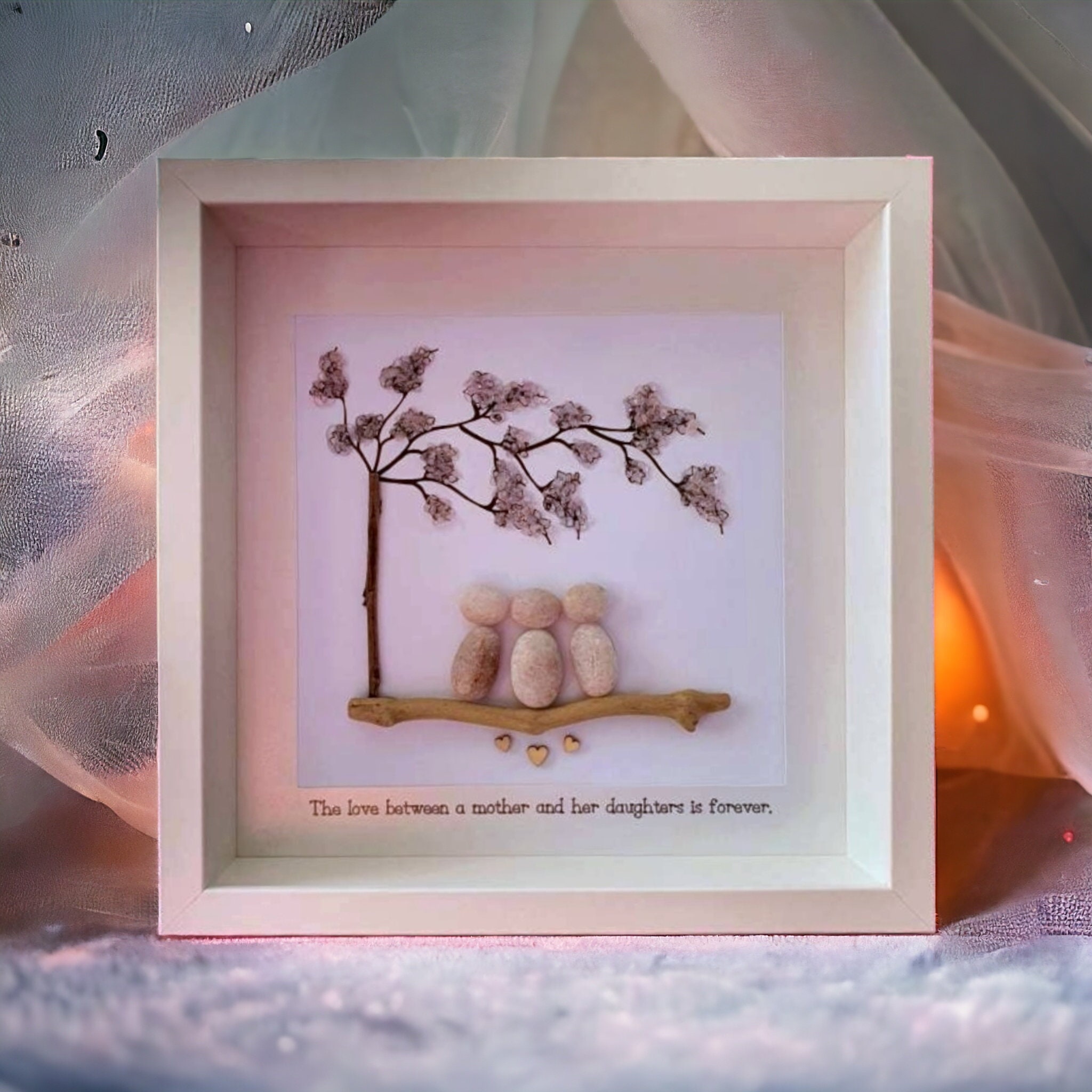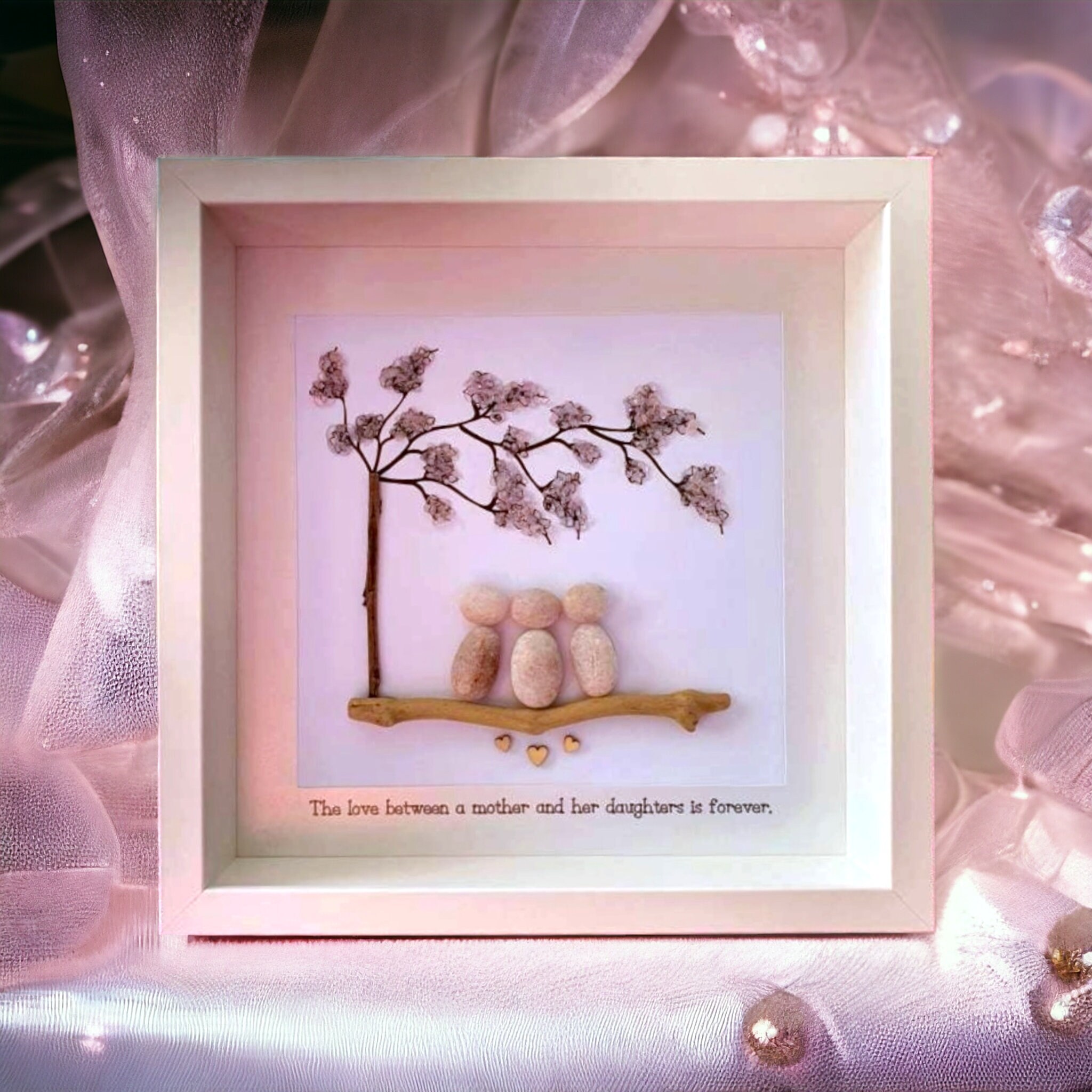 This listing is for a pebble art framed picture with a mum and her two daughters.