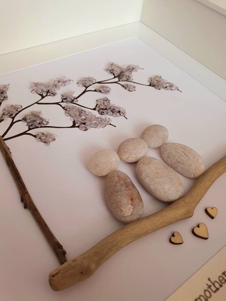 All my pebble art pictures are made to order. Please be aware that each pebble, quartz crystal gemstone, sea glass, twigs and driftwood are all natural pieces, which means that no piece will be the same, there will be variations in; colour, shape, size and surface condition.