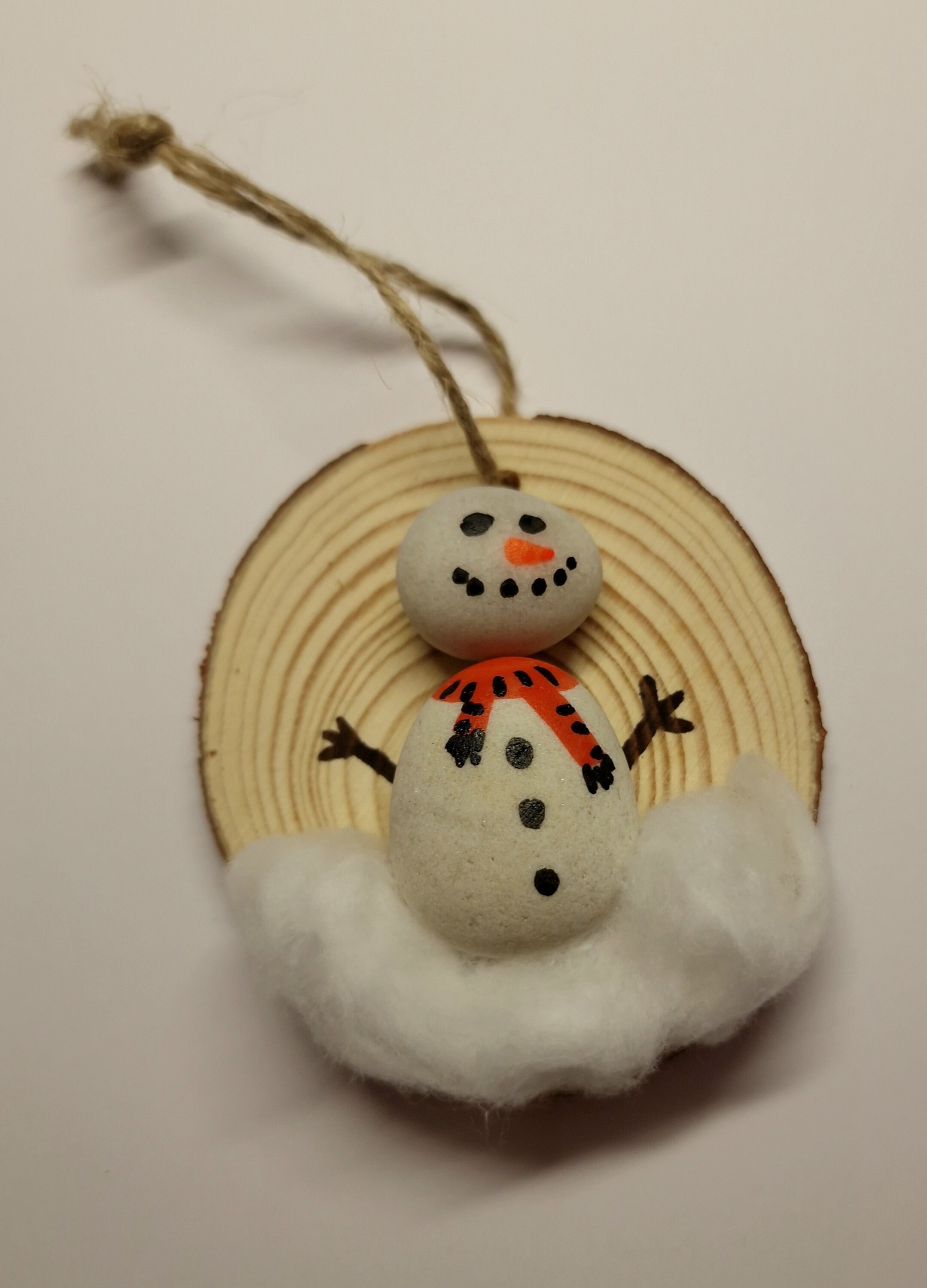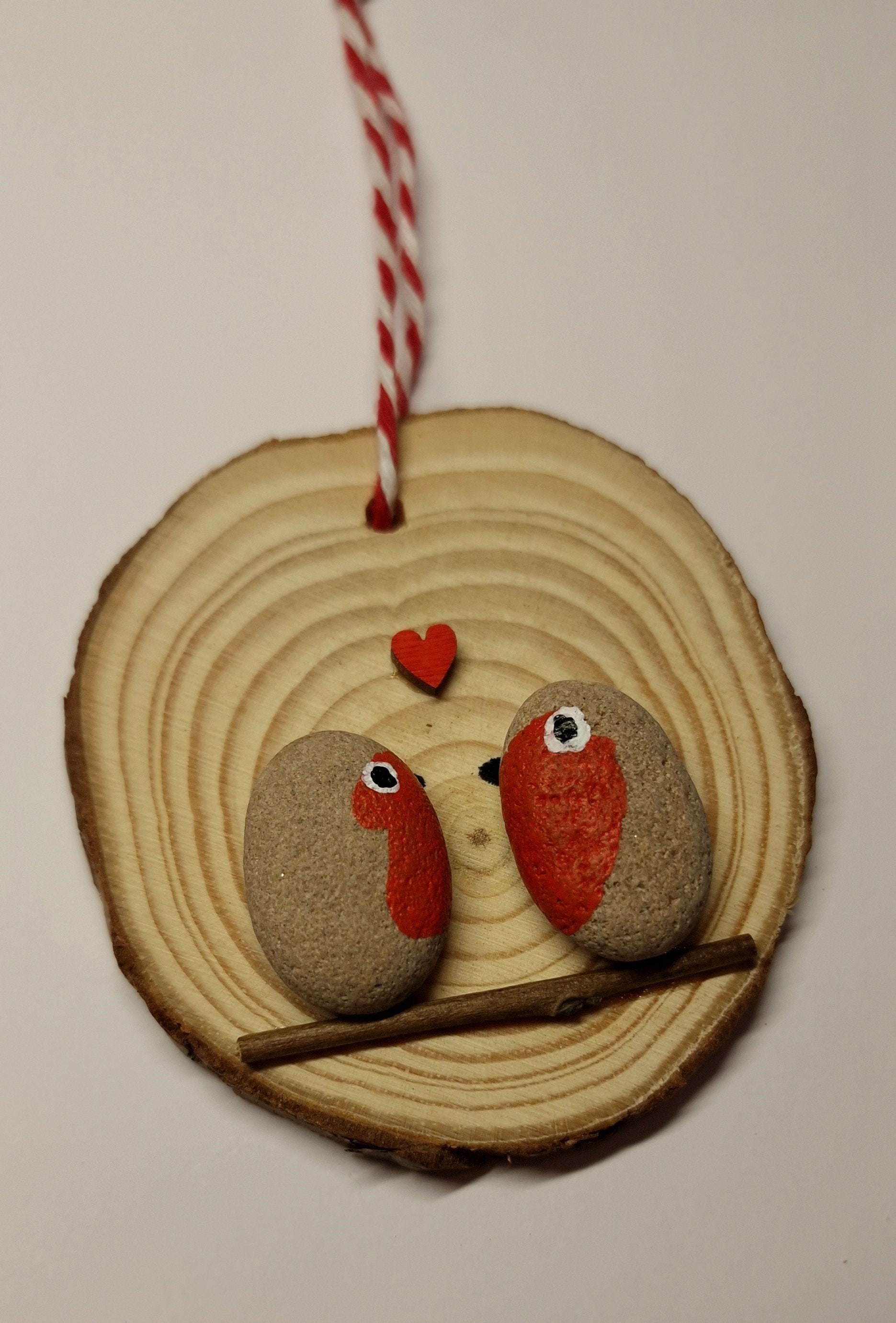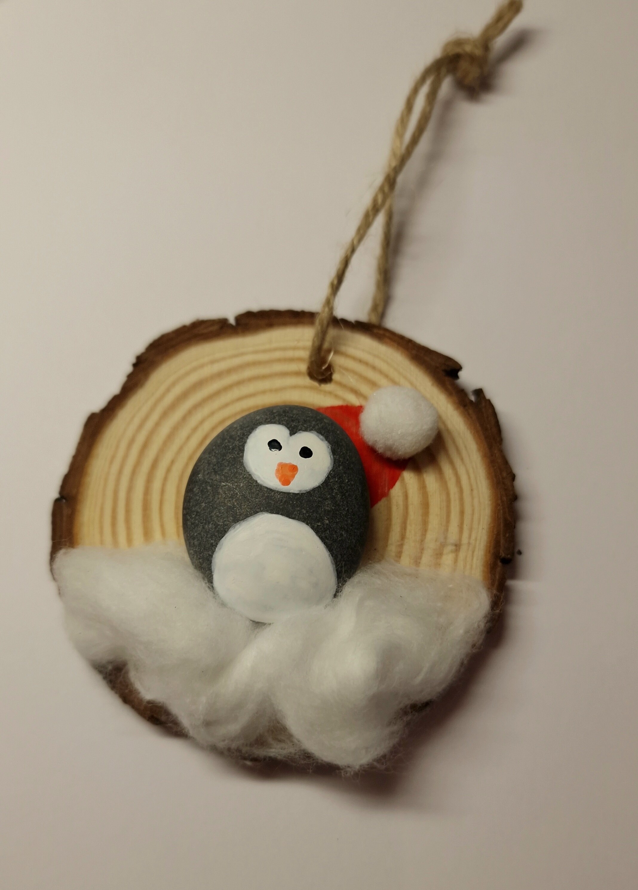 Bring a touch of rustic charm and handmade magic to your Christmas décor with this set of 4 unique pebble art ornaments. Crafted on natural pine wood slices and featuring festive characters – a snowman, Rudolph, a penguin, and two robins – these decorations are full of character and seasonal spirit!