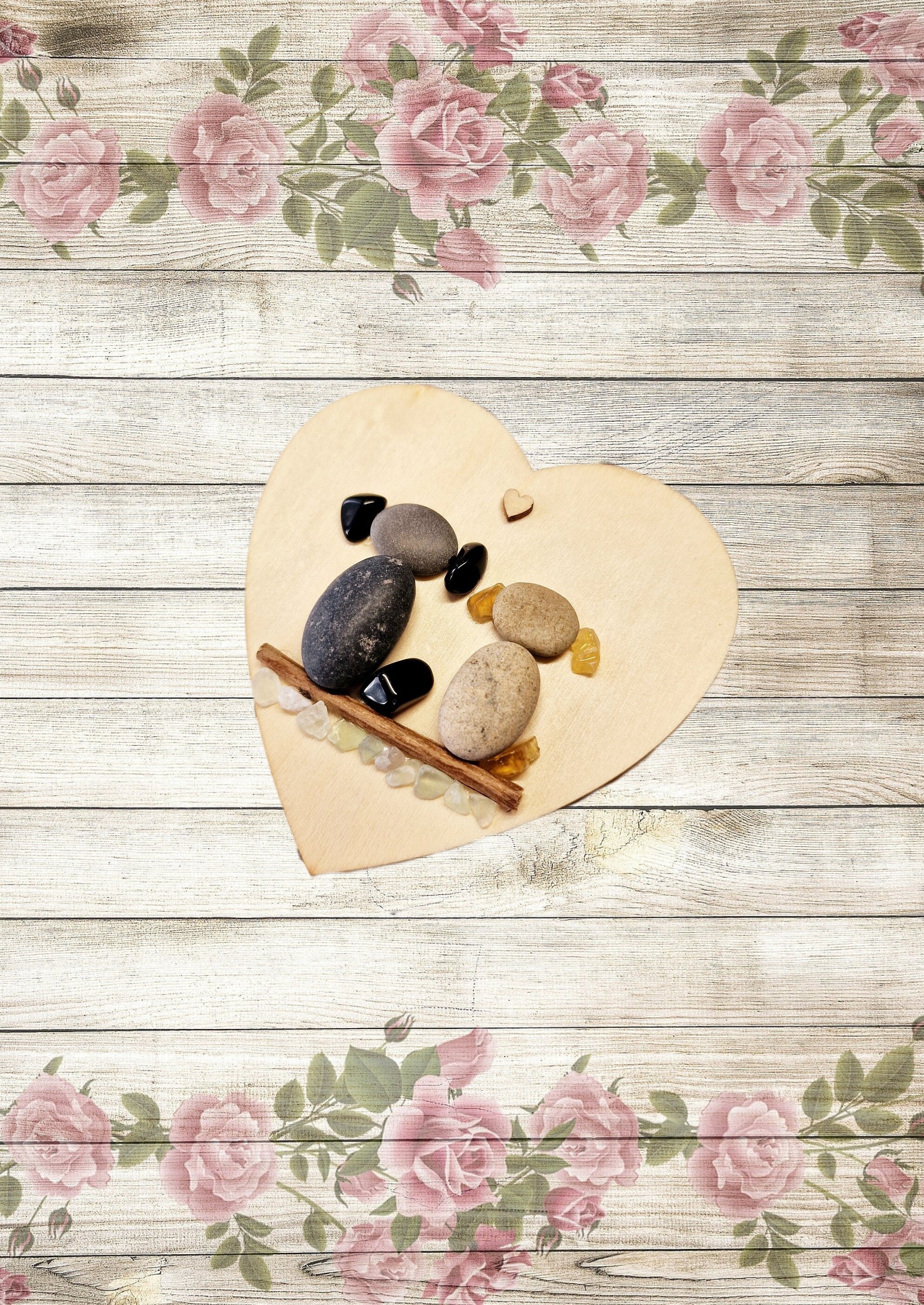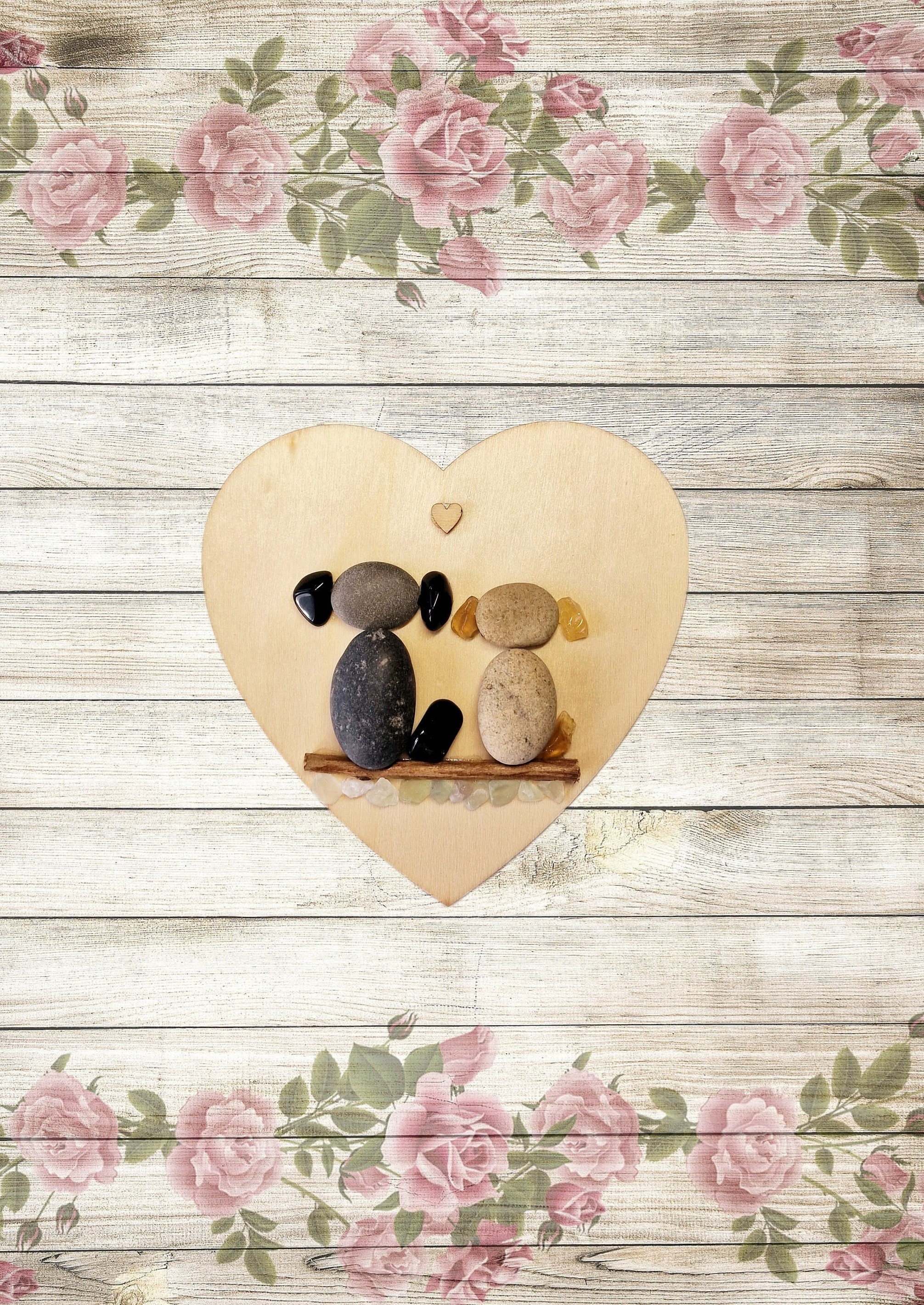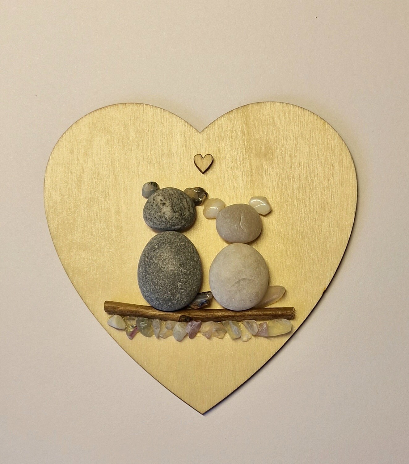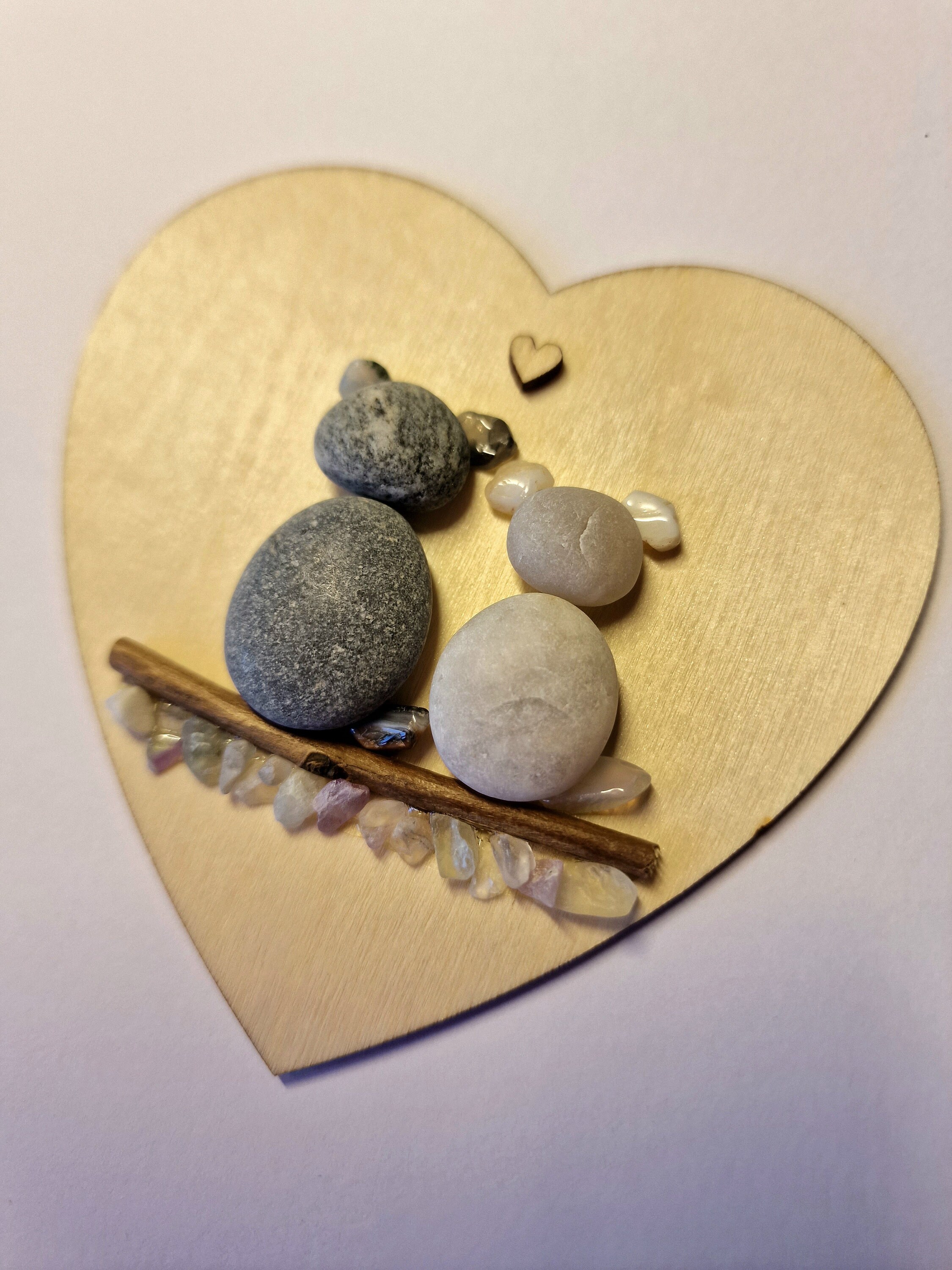 Celebrate your furry (or feathered!) family members with this handmade personalised pebble art pet magnet. Each piece features your chosen pets sitting atop a wooden log, surrounded by shimmering quartz crystals – all beautifully arranged on a natural wooden heart magnet.