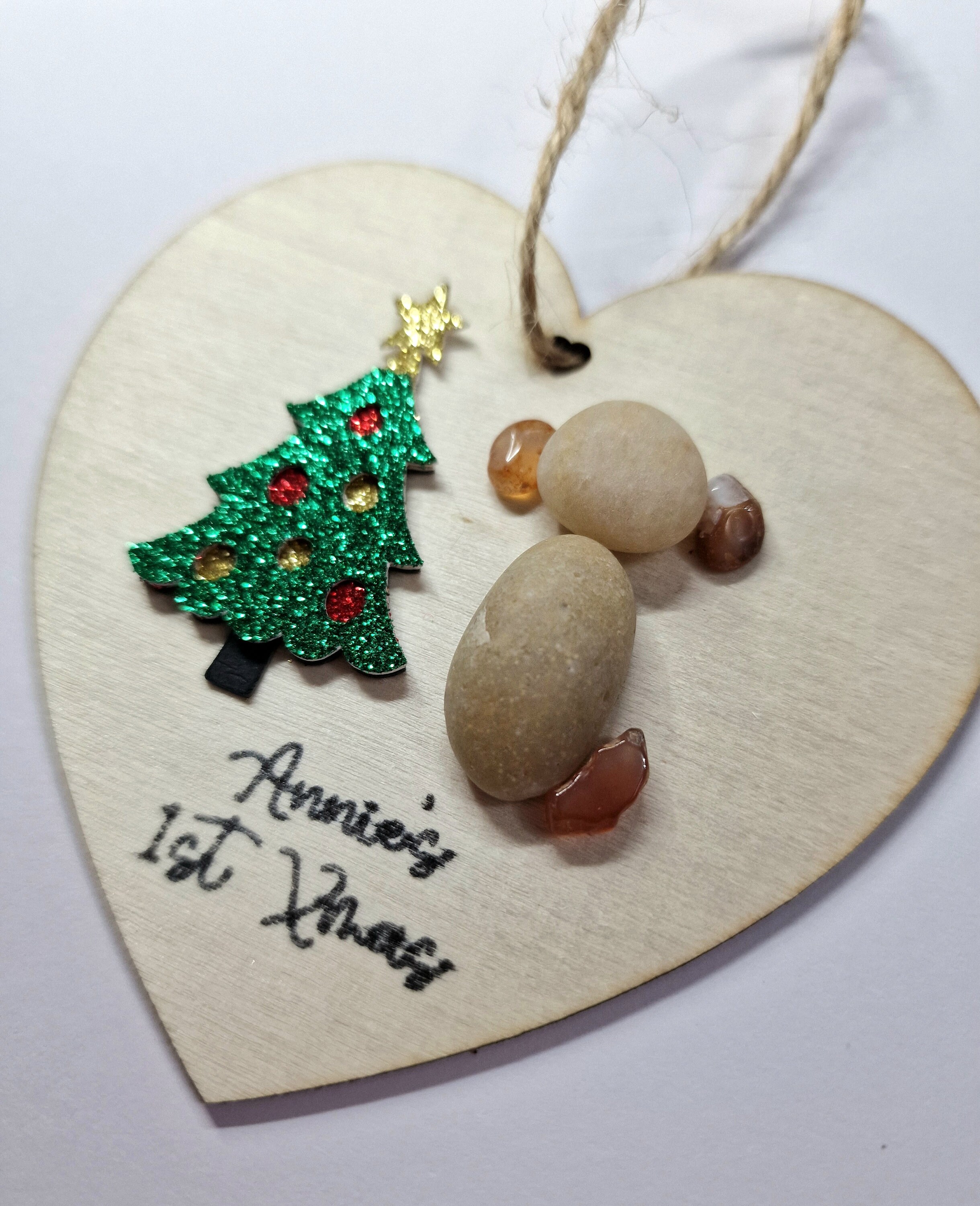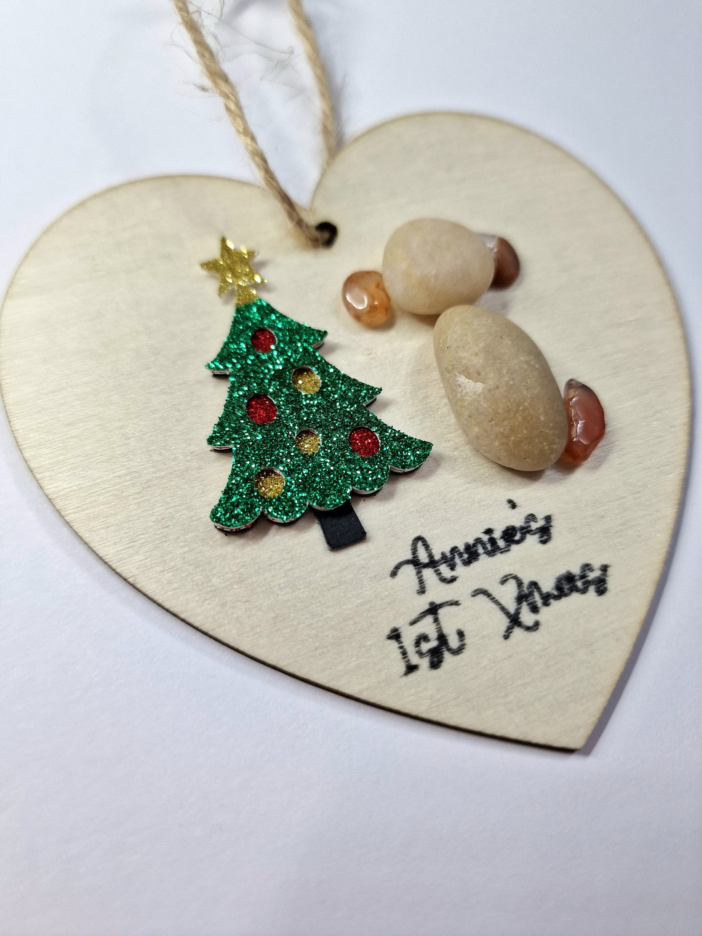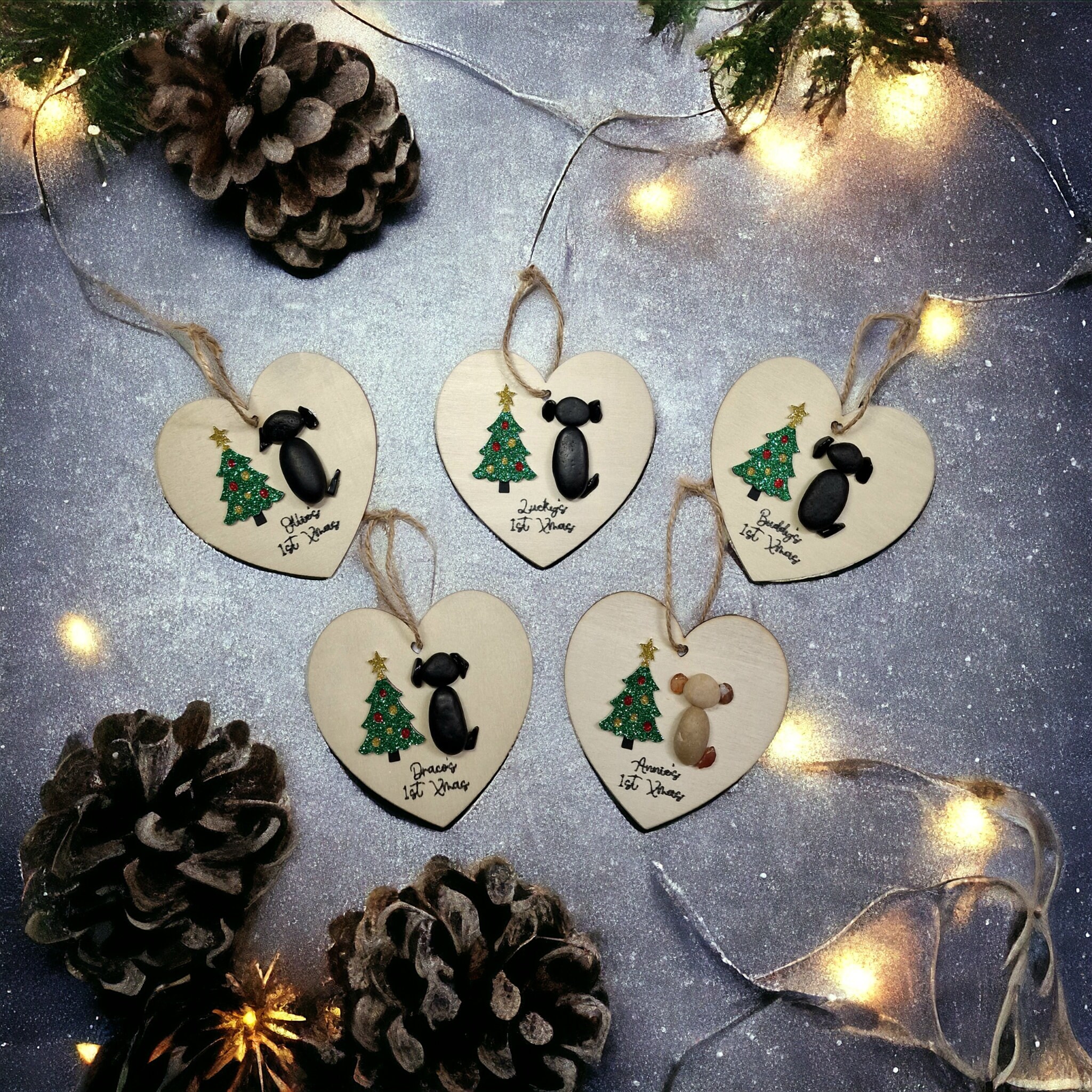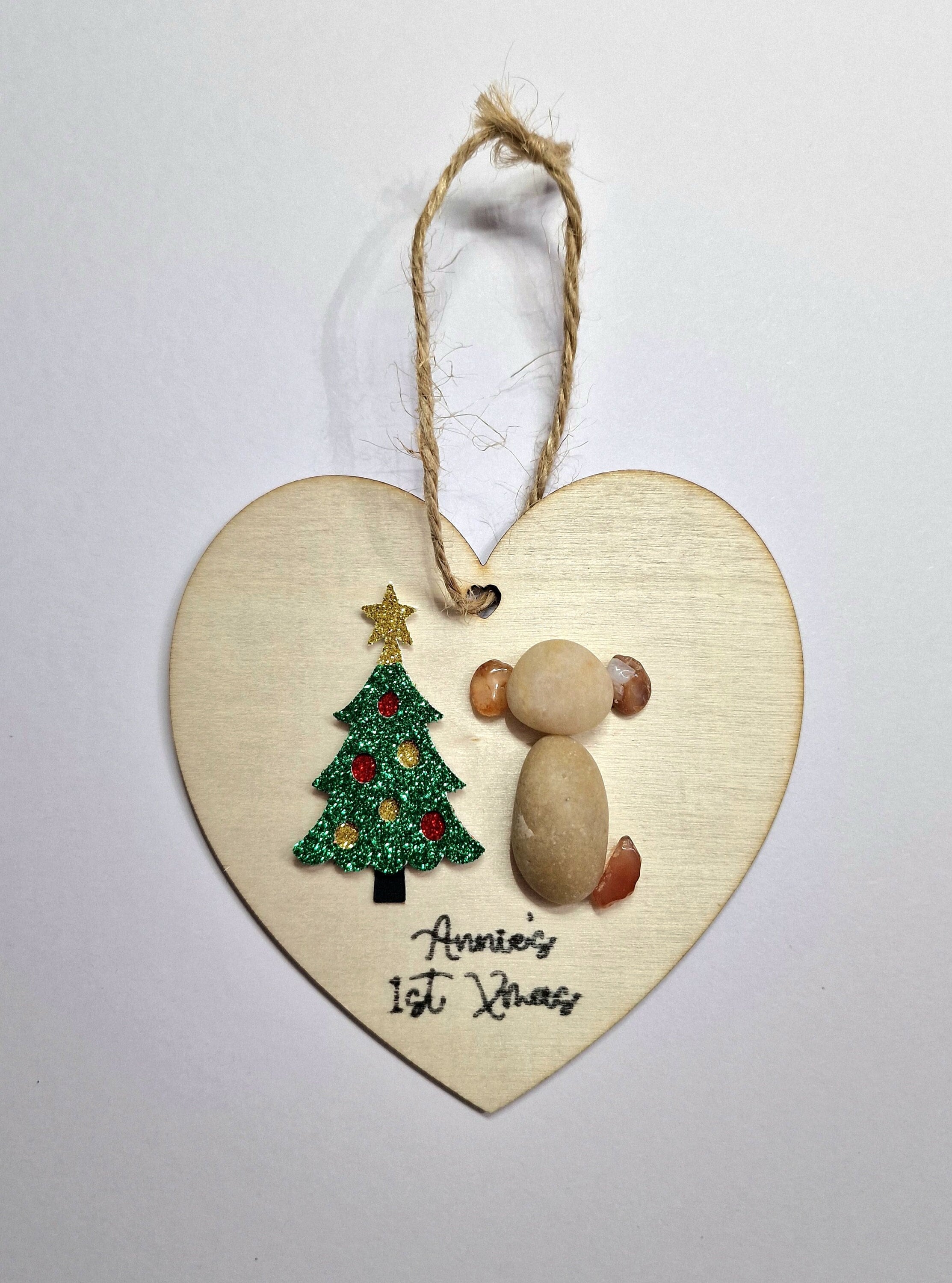 This handmade wooden heart plaque is a truly special keepsake, personalised with your pet’s name and featuring a handcrafted pebble pet and a sparkly Christmas tree. It’s the perfect festive decoration or gift for any pet lover.